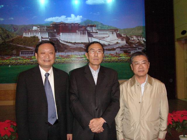 3、王國強(qiáng)副部長、馬建中副局長與西藏自治區(qū)主席向巴平措合影