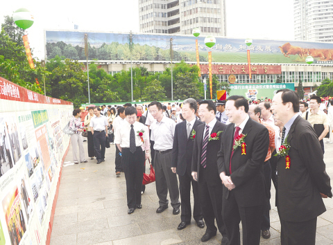 專家講座贏得社區(qū)醫(yī)生喝彩 專家為社區(qū)醫(yī)生講課 記者 任壯/攝 云南省活動啟動儀式現(xiàn)場 記者 巨鋒/攝 王國強(右二)、高峰(右三)等參觀百米展廊 記者 巨鋒/攝