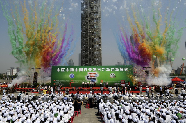 5月23日,天津啟動(dòng)儀式現(xiàn)場(chǎng)。記者巨鋒攝 5月24日,在天津武清區(qū)啟動(dòng)儀式上王國(guó)強(qiáng)等領(lǐng)導(dǎo)為武清區(qū)評(píng)出的6位中醫(yī)名家頒發(fā)證書(shū)。記者巨鋒攝 5月23日,在天津啟動(dòng)儀式上,天津中醫(yī)藥大學(xué)的專(zhuān)家位外國(guó)友人把脈看病 " />