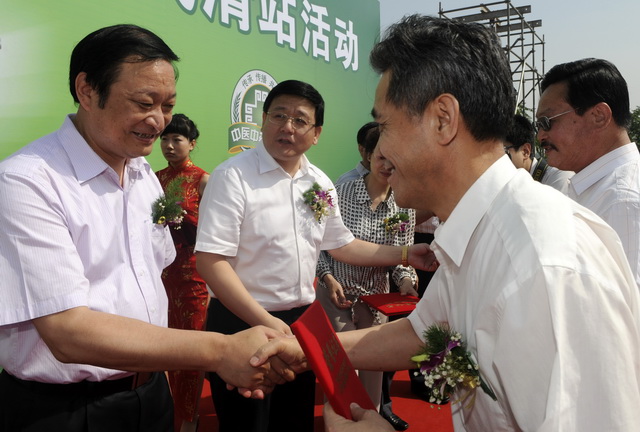 5月24日,在天津武清區(qū)啟動(dòng)儀式上王國(guó)強(qiáng)等領(lǐng)導(dǎo)為武清區(qū)評(píng)出的6位中醫(yī)名家頒發(fā)證書(shū)。記者巨鋒攝