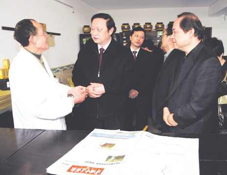 陽春三月,春風(fēng)和煦。鄧小平故里四川廣安市廣安區(qū)協(xié)興鎮(zhèn)。 3月29日下午,衛(wèi)生部副部長、國家中醫(yī)藥管理局局長王國強(qiáng)參加“中醫(yī)中藥中國行”四川省廣安站活動的啟動儀式后,與國家中醫(yī)藥管理局副局長馬建中及四川省有關(guān)人員一同,乘車來到距廣安市區(qū)6公里的協(xié)興鎮(zhèn)牌坊村衛(wèi)生站看望鄉(xiāng)村中醫(yī)王大均。 “妙手施仁術(shù)望聞問切,辨證查機(jī)因寒熱虛實(shí)”,迎著這樣一副對聯(lián),王國強(qiáng)走進(jìn)鄉(xiāng)村中醫(yī)王大均及其兒子王敏工作的牌坊村衛(wèi)生站??吹?4歲的王大均正在專注地給病人開處方,王國強(qiáng)沒有打擾,在他身后駐足。 在牌坊村,王大均是十里八鄉(xiāng)聞名的老中醫(yī),1993年被評為全國優(yōu)秀鄉(xiāng)村醫(yī)生。他和兒子都取得鄉(xiāng)村醫(yī)生執(zhí)業(yè)證書,為全村3300多人提供中醫(yī)藥服務(wù)。 當(dāng)?shù)匦l(wèi)生局人員介紹王國強(qiáng)時,王大均接過話說:“我早就認(rèn)識王部長了!在中國中醫(yī)藥報上‘見過’好多次了!”王大均的開場白,使氣氛一下子活躍起來。 王大均從中國中醫(yī)藥報創(chuàng)刊時訂閱,迄今20年。他按照政策法規(guī)、臨床知識等內(nèi)容分類,剪下來貼在不同的本子上,至今積了厚厚一大摞。不僅自己看,還放在藥柜旁供人閱覽。最近兩周的報紙,則掛在門診部進(jìn)門的墻上。“中國中醫(yī)藥報對我?guī)椭纱罅耍∶恳黄谖叶颊J(rèn)真看,你們的報紙越辦越好!” 王國強(qiáng)關(guān)切地問老人:“行醫(yī)多少年了?有什么困難嗎?” 王大均說:“我從衛(wèi)生站成立就開始給老百姓看病,40多年了。中 醫(yī)藥方便、便宜,老百姓信得過。我們希望能有更多的機(jī)會參加中醫(yī)技能培訓(xùn),也能給我們參加職稱考試和評選的機(jī)會。” 王國強(qiáng)連連點(diǎn)頭,“目前衛(wèi)生部正在研究現(xiàn)有的醫(yī)師從業(yè)資格政策,對于師承和確有一技之長者,將會有相關(guān)政策。而且,要增加對他們的中醫(yī)理論和技能培訓(xùn),考試要側(cè)重實(shí)際和經(jīng)驗(yàn)。” 牌坊村衛(wèi)生站有300多種中藥材,大部分中藥的炮制加工,都是王大均自己完成。王國強(qiáng)拉開裝滿中藥的藥斗子,一邊看一邊問藥材的質(zhì)量、產(chǎn)地、炮制等問題,王大均一一回答。裝中藥的柜子上整齊地擺放著一摞本子,這是王大均自2003年以來給病人開的處方。“這都是我的醫(yī)案,將來我要認(rèn)真整理、總結(jié)。” 在王國強(qiáng)與王大均談話間,20多平方米的衛(wèi)生站已經(jīng)擠滿了人,圍繞中醫(yī)治病紛紛發(fā)表看法。 “王醫(yī)生有中醫(yī)絕活,我們都找他看病。” “中藥便宜,也沒啥子副作用,我愿意看中醫(yī)!” “腰痛,腿痛,讓老王按摩幾下,就好嘍!”…… 王國強(qiáng)說:“鄉(xiāng)村醫(yī)生要像王大均這樣,善于總結(jié)行醫(yī)經(jīng)驗(yàn)。衛(wèi)生局也要收集鄉(xiāng)村醫(yī)生的好經(jīng)驗(yàn)和一技之長,在農(nóng)村推廣,更好地推進(jìn)中醫(yī)藥進(jìn)農(nóng)村、進(jìn)社區(qū)、進(jìn)家庭。”他握著王大均的手,“感謝您幾十年如一日為鄉(xiāng)村老百姓服務(wù),精神可嘉,值得學(xué)習(xí)!” “這是醫(yī)生的職責(zé)!”王大均說,“我的孫子、孫女也在跟我學(xué)習(xí)中醫(yī)。”王大均12歲的小孫子王淵,手里拿著一本《藥性歌括四百味》,靦腆地站在爺爺旁邊。 王國強(qiáng)摸著孩子的頭說:“你培養(yǎng)得好啊,以后要讓他們讀大學(xué),讀中醫(yī)藥大學(xué),成為名中醫(yī),為老百姓服務(wù)。” 隨后,王國強(qiáng)等又調(diào)研了協(xié)興中心醫(yī)院衛(wèi)生院,并與廣安區(qū)部分鄉(xiāng)村中醫(yī)進(jìn)行了座談。在聽取他們對農(nóng)村中醫(yī)藥工作的意見后,王國強(qiáng)表示,國家中醫(yī)藥管理局將高度重視和推動解決大家提出的鄉(xiāng)村中醫(yī)職稱評定、技能培訓(xùn)等問題。“衛(wèi)生和中醫(yī)藥工作的重點(diǎn)在農(nóng)村,與農(nóng)民幸福安康息息相關(guān)。我們要努力做好農(nóng)村中醫(yī)藥工作,充分滿足廣大農(nóng)民對中醫(yī)藥的需求。” (記者 柴玉)