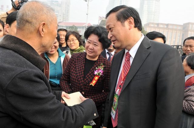 王國強(右一)_張岱梨副省長(右二)與參加活動的群眾親切交談(巨鋒攝)