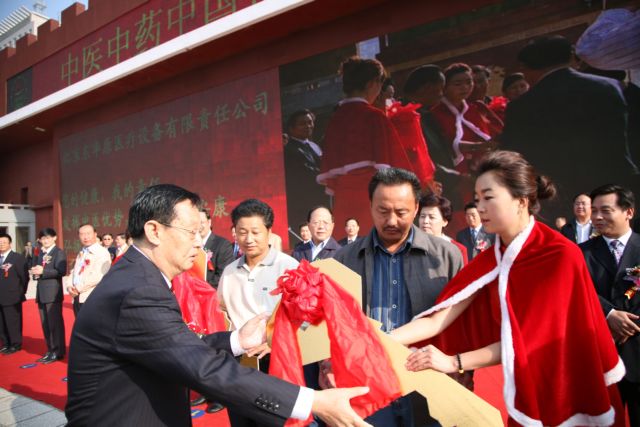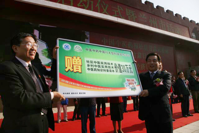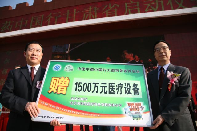 中國中醫(yī)藥報社副社長王華章代表組委會向甘肅省捐贈醫(yī)療設(shè)備(攝影 喬建安)