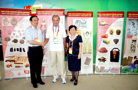 8月15日,應(yīng)國(guó)際奧委會(huì)特別要求,北京奧組委和北京市中醫(yī)管理局在奧運(yùn)村共同舉辦了“中國(guó)傳統(tǒng)醫(yī)學(xué)在運(yùn)動(dòng)醫(yī)學(xué)中的預(yù)防性應(yīng)用”研討會(huì),以滿足來(lái)自世界各國(guó)和地區(qū)的運(yùn)動(dòng)醫(yī)學(xué)人員進(jìn)一步了解中醫(yī)、體驗(yàn)中醫(yī)的愿望。衛(wèi)生部副部長(zhǎng)、國(guó)家中醫(yī)藥管理局局長(zhǎng)王國(guó)強(qiáng),北京市中醫(yī)管理局局長(zhǎng)趙靜出席研討會(huì),并將《走進(jìn)中醫(yī)——歷史與文化》系列展板贈(zèng)送給國(guó)際奧委會(huì)醫(yī)療委員會(huì)主席安·林奎斯特博士。