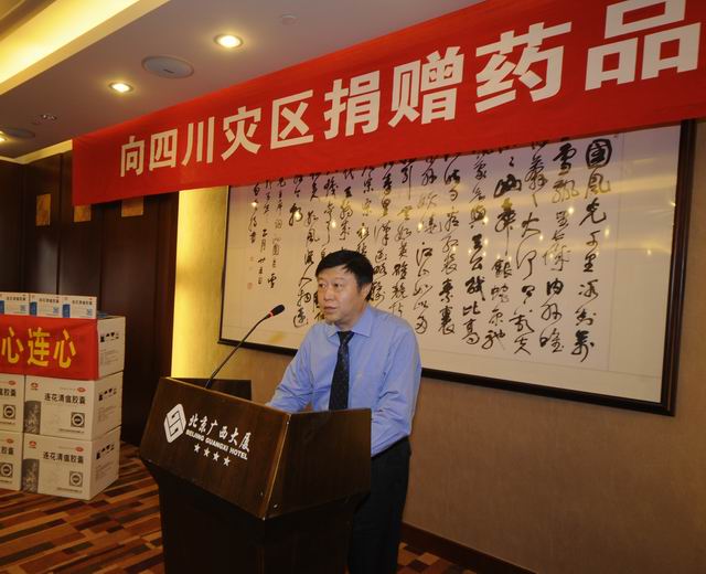 各位來賓、各位新聞界的朋友: 大家上午好! 四川汶川特大地震災(zāi)害牽動(dòng)著億萬(wàn)中國(guó)人民的心,也牽動(dòng)著全體中醫(yī)藥工作者的心。今天,我們?cè)谶@里舉辦“向地震災(zāi)區(qū)捐贈(zèng)藥品儀式”,是中醫(yī)藥界" />