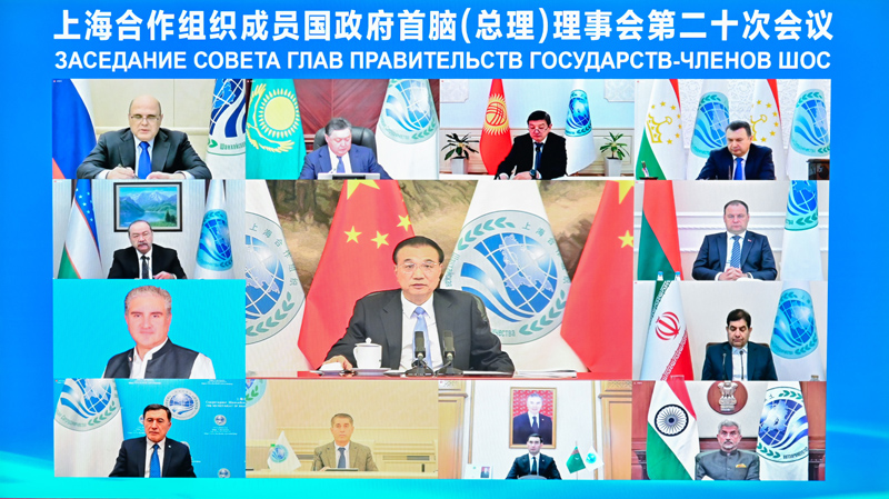 11月25日,國(guó)務(wù)院總理李克強(qiáng)在北京人民大會(huì)堂出席上海合作組織成員國(guó)政府首腦(總理)理事會(huì)第二十次會(huì)議。會(huì)議以視頻方式舉行。新華社記者 翟健嵐 攝