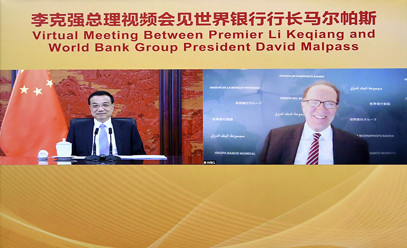 12月13日,國務院總理李克強在北京中南海紫光閣視頻會見世界銀行行長馬爾帕斯。新華社記者 殷博古 攝