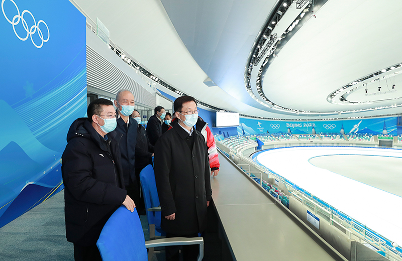 韓正在有“冰絲帶”之稱的國家速滑館,觀看了“相約北京”系列測(cè)試賽匯報(bào)視頻,并聽取場(chǎng)館建設(shè)、賽事籌備、場(chǎng)館制冰等情況匯報(bào)。到國家體育館,了解場(chǎng)館布局、功能分區(qū)、疫情防控等情況,察看冰球比賽場(chǎng)地、運(yùn)動(dòng)員更衣室設(shè)施情況。在國家游泳中心,聽取“水冰轉(zhuǎn)換”和場(chǎng)館改造、奧林匹克大家庭接待、賽時(shí)場(chǎng)館景觀設(shè)置等情況匯報(bào),實(shí)地考察冰壺比賽項(xiàng)目,與工作人員親切交流。韓正表示,北京冬奧會(huì)、冬殘奧會(huì)籌辦工作已經(jīng)進(jìn)入關(guān)鍵時(shí)期,要按規(guī)劃高質(zhì)量完成場(chǎng)館及配套設(shè)施建設(shè),扎實(shí)做好場(chǎng)館運(yùn)行工作,為賽事順利舉辦提供有力支撐。要認(rèn)真研究冬奧場(chǎng)館賽后利用,把舉辦重大賽事同服務(wù)全民健身結(jié)合起來,推動(dòng)冰雪運(yùn)動(dòng)普及發(fā)展。