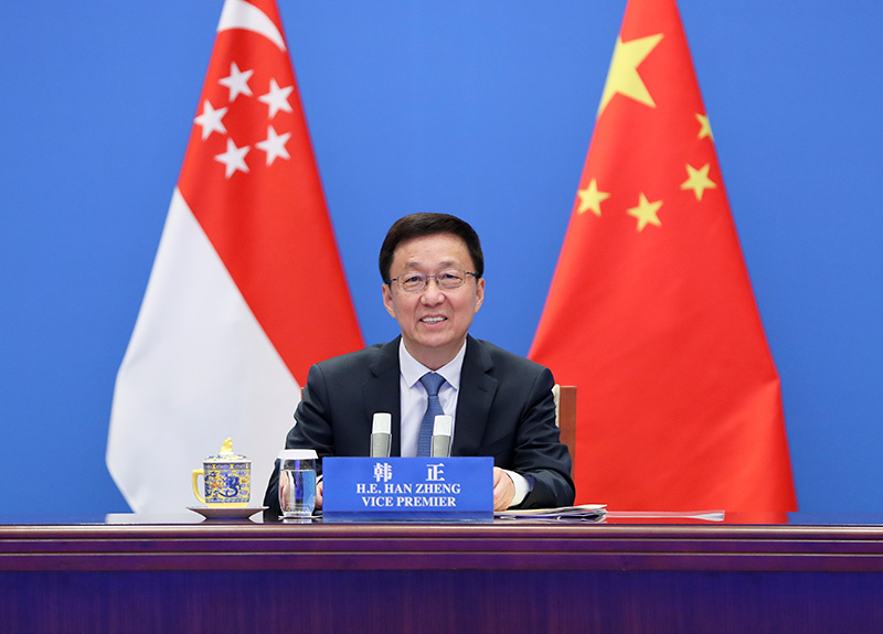 會見時,韓正表示,中新作為近鄰和伙伴,政治上相知互信,高層交往密切。習近平主席不久前同李顯龍總理通電話,對中新關系發(fā)展作出新的戰(zhàn)略指引。中方歡迎新方深度參與中國構建新發(fā)展格局進程,愿同新方攜手同行,深入開展高質量共建“一帶一路”合作,共同維護多邊主義和自由貿易,加強新冠疫苗和藥物研發(fā)生產等抗疫合作,積極拓展數(shù)字經濟、綠色發(fā)展等領域合作,推動兩國合作不斷提升質量和水平。