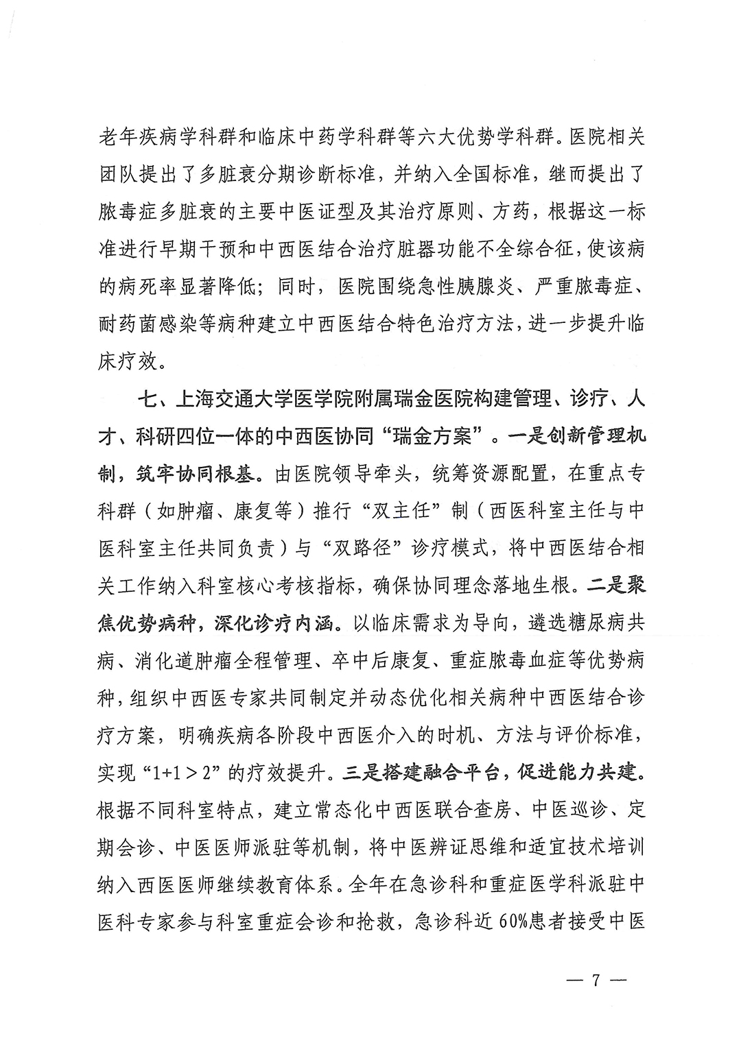 中西醫(yī)協(xié)同“旗艦”醫(yī)院項目啟動以來,各項目單位深入研究、積極探索,創(chuàng)造性地開展工作,形成了很多好的經(jīng)驗和做法,包括創(chuàng)新中西醫(yī)協(xié)同服務(wù)模式、增強(qiáng)中西醫(yī)結(jié)合服務(wù)能力、提升重大疑難疾病中西醫(yī)結(jié)合防治水平、開展中西醫(yī)協(xié)同科研攻關(guān)、強(qiáng)化高水平復(fù)合型中西醫(yī)結(jié)合人才培養(yǎng)和隊伍建設(shè)等。